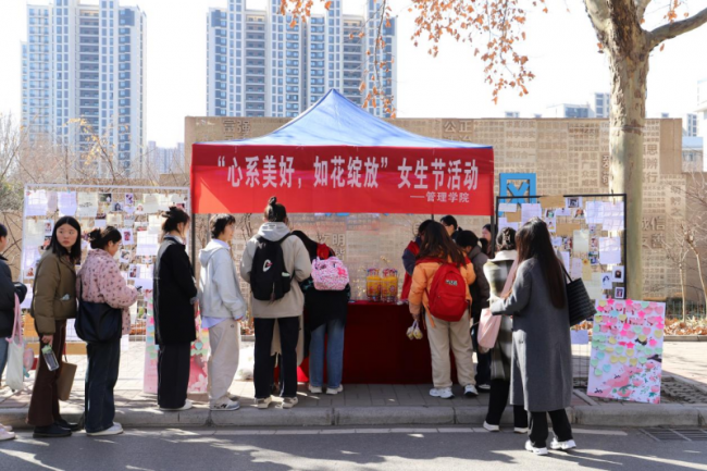 为丰富威廉希尔官网学生的校园生活,让全体女生感受到节日的快乐,管理学院于3月7日-8日开展以“心系美好,如花绽放”为主题的女生节活动。本次活动参加人数累计达1000余人,活动过程中,同学们纷纷在便签纸上写下对女生或对自己的祝福语,一面墙,一张纸,一个心愿,藏着无数个美好憧憬和青春,寄托着同学们美好的心愿与祝福。此次活动不仅使女性感受到了节日的欢乐氛围,也增强了她们的自信心和自豪感,展现了积极向上的面貌。管理学院将继续秉承“三八”妇女节的节日精神,致敬女性、关爱女性,促进社会的和谐发展。