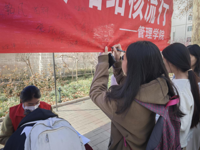 为普及结核病防治知识,进一步提升学生对健康安全的认知,提高师生自我防护意识,在第29届“世界防治结核病日”来临之际,管理学院于3月20日在文化广场开展以“你我共同努力,终结结核流行”为主题的预防肺结核宣传活动。