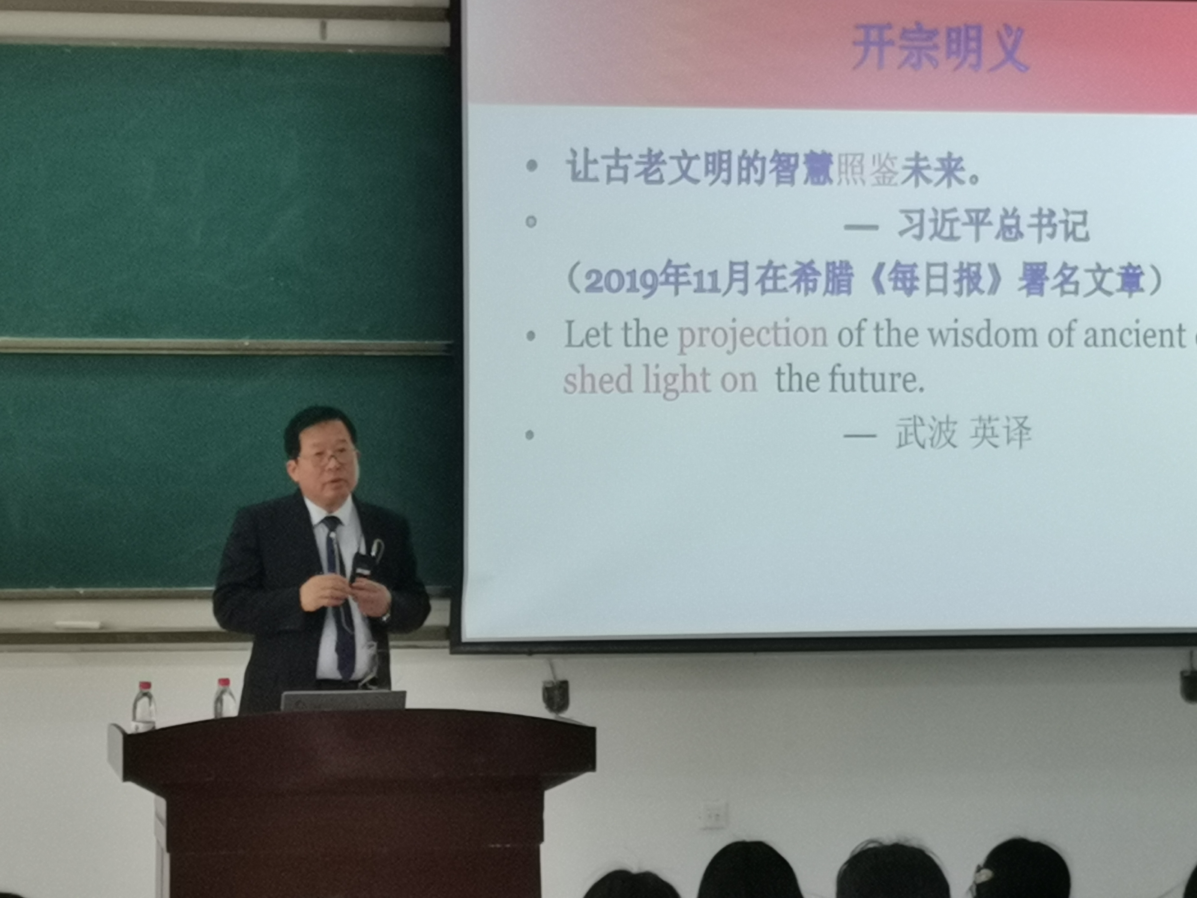 讲座中,武教授通过翻译实例,指明文化自觉是文化自信的前提,回归经典与正本清源是翻译中国的必由之路,并提出翻译中国宜遵守三大原则:一是内外有别;二是译随境变;三是最大公约与最佳对称。