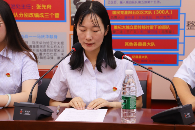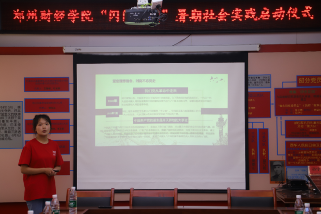 社会实践团主讲人苏燕慧进行党史宣讲,她指出通过学习红色文化,可以受到教育、启迪、鼓舞,并从中汲取前进的力量,成长为担当民族复兴大任的时代新人。