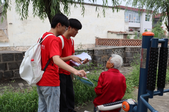 实践团成员前往新中镇新中村进行问卷调研,收集红色旅游业发展现状的相关数据。调研过程中,新中镇副镇长和新中村党支部书记介绍了当地旅游业发展的基本情况,为调研工作提供了支持和帮助。接着,实践团成员询问了村里几位老党员对于当地红色旅游业的发展建议,党员前辈们给予实践团成员深切的关怀与帮助,调研工作稳步推进。