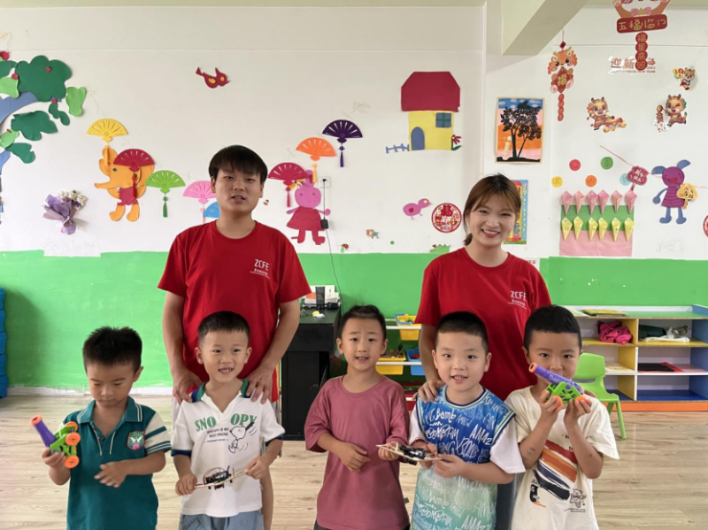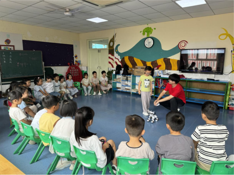 实践团前往长垣市正大幼儿园和伟才幼儿园,开展“科普点亮梦想 少年智造未来”科普进校园活动。实践团成员带领小朋友们进行了一系列趣味性活动互动,例如为小朋友们表演舞蹈、播放科普动画短片、科普智能制造知识、带领小朋友们一起拼装智能小玩具“声控小车”“避障小飞机”和展示智能机械狗等。通过趣味性、游戏化、生活化的互动课堂,寓教于乐,小朋友们亲身感受到科技的魅力,形成爱科学、学科学、讲科学、用科学的良好氛围。