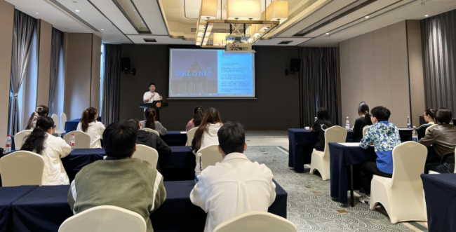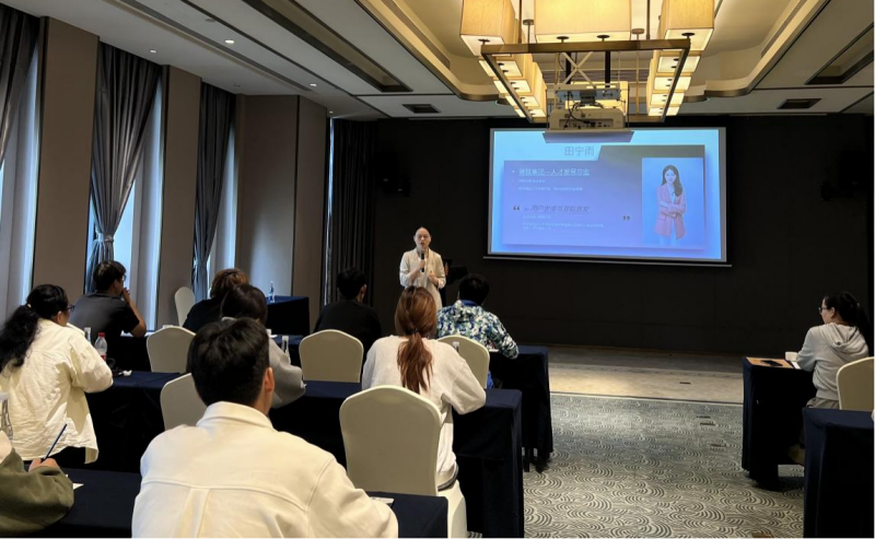随后,潘世凯对德胧集团创始人、业务板块、发展历程、旗下品牌及集团人才培养体系进行介绍。德胧集团是亚太领先的酒店和体验消费集团,其核心业务包括酒店、餐饮、线下娱乐等,业务版图涵盖中国、日本、印尼等地。目前拥有和运营十一个品牌,包括基于时空体验的百达屋会员体系和享誉业界的十大生活方式品牌,如开元名都、开元名庭、方外、观堂、芳草地度假酒店、CANARY 加纳利、Ruby Hotels瑰宝酒店、曼居、颐居、MORA SPACE穆拉,共计酒店1400余家,客房达21万间。