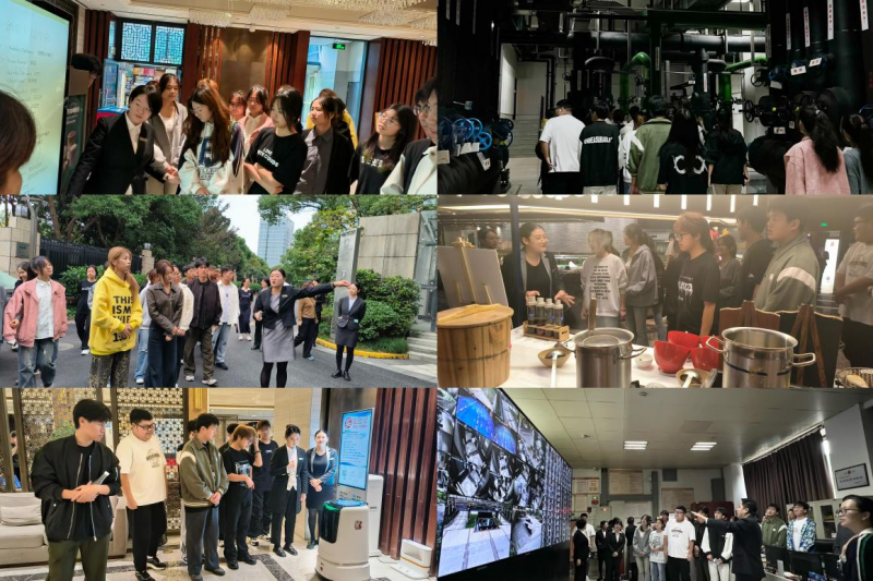 仪式后,在酒店管理人员的带领下,同学们对酒店的运营区域和后台区域进行了参观,包括员工宿舍、垃圾房、大堂吧、各部门工作区域、西餐自助厅、艺术空间、安保部门、前台、行李物品寄存、中餐厅、后厨、宴会厅、客房、康乐、验收区及空调机房等。