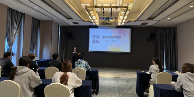 20日上午,浙商开元名都酒店市场收益部总监郭真真和德胧集团人才发展总监田宁雨分别作“智慧酒店与数字化转型”和“酒店产业与人才教育”主题讲座。郭真真从“智慧酒店概念、智慧酒店发展阶段、国内外智慧酒店案例、浙商开元名都酒店智慧化案例分享和酒店智慧化发展的不利和趋势”几个方面展开,田宁雨围绕“酒店行业发展现状、酒店对专业人才的需求和未来酒店人才改革与创新”对酒店人才培养进行了分析,两场讲座内容前沿、数据详实、案例丰富。