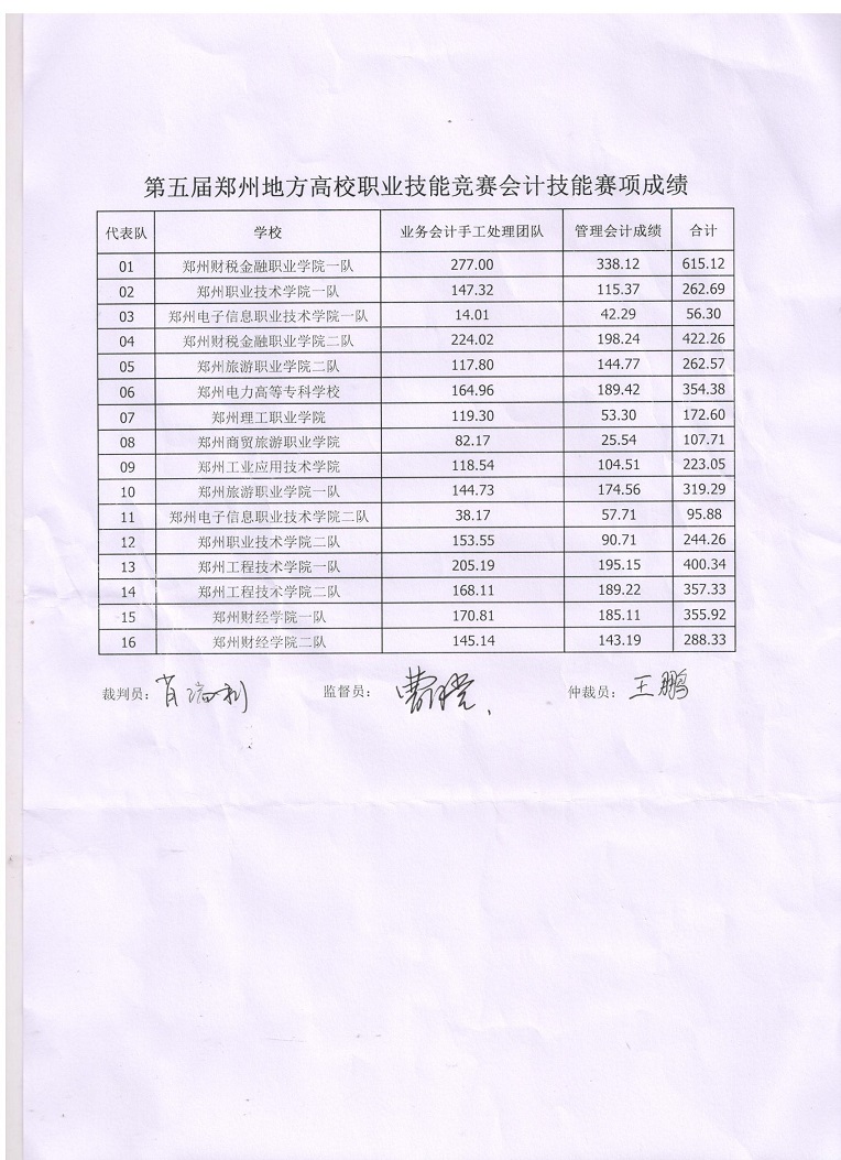 郑州市第五届地方高校职业技能竞赛会计赛项成绩公示