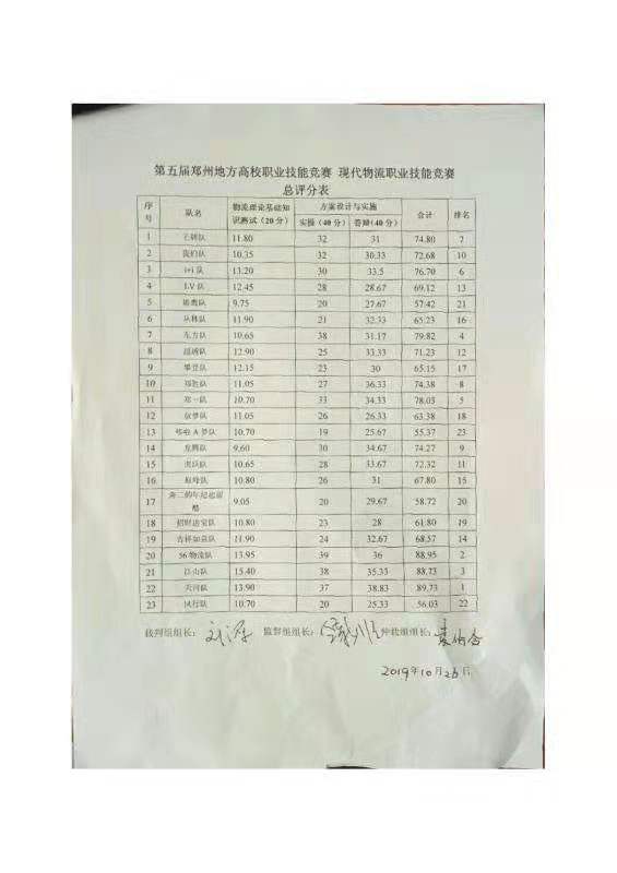 第五届郑州地方高校职业技能竞赛现代物流职业能力赛项成绩公示