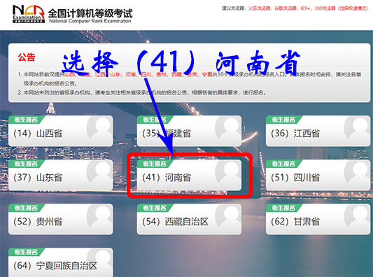 具体报名开始时间为:2020年12月29日7:00,报名结束时间为:2021年1月8日8:00,考生登录https://ncre-bm.neea.cn,按照系统提示选择河南考生报名,登录系统、阅读报名协议,填写基本信息、选择报考考点(410091威廉希尔足球官网)、选择报考科目、上传照片、网上支付完成在线报名。