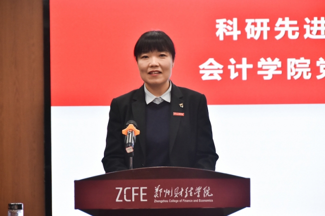 科研先进个人代表会计学院党总支书记温毓敏发言