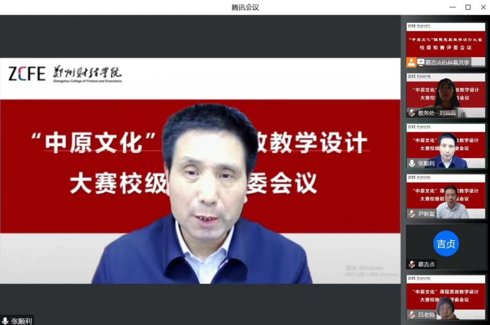 10月31日下午,教务处副处长葛吉贞线上主持召开赛前评委会议。副校长张顺利作重要讲话,他在对各位专家的大力支持表示由衷感谢的同时,强调了本次评审工作的注意事项:一是要以本次比赛为契机,带动全校教师广泛开展课程思政,推动中原文化特色融入课程建设。二是紧扣主题和重点,抓住关键要素,突出地方特色。重点审核课程思政内容设置、体系架构、实现路径以及参赛材料质量。三是提高站位,遵守纪律,遵循客观、公正、严格原则开展评审,发掘亮点进行推广,发现不足以期改进。