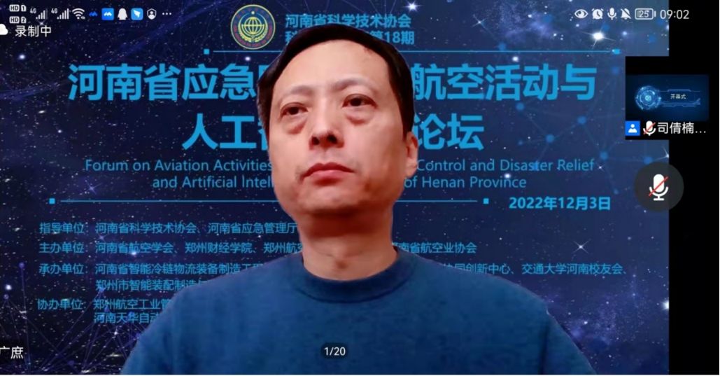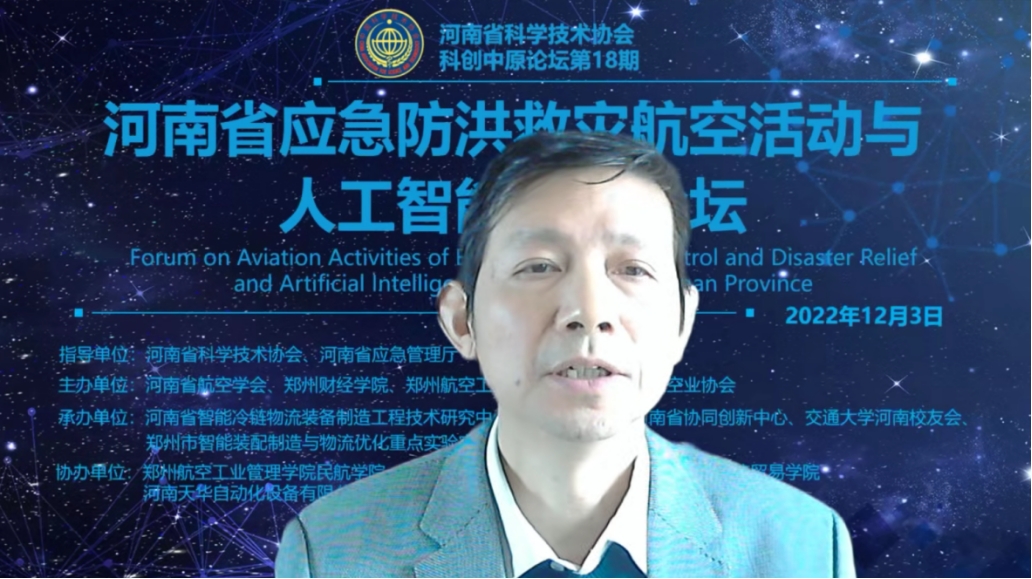 12月3日,在河南省科学技术协会、河南省应急管理厅等有关部门指导下,由河南省航空学会、威廉希尔足球官网、郑州航空工业管理学院、河南省航空业协会联合主办,河南省智能冷链物流装备制造工程技术研究中心、航空经济发展河南省协同创新中心、交通大学河南校友会、郑州市智能装配制造与物流优化重点实验室联合承办,郑州航空工业管理学院民航学院、郑州航院空天创新研究院、福建江夏学院经济贸易学院、河南天华自动化设备有限公司、大河思源酒业有限公司等单位协办的第18期科创中原论坛--“河南省应急防洪救灾航空活动与人工智能应用论坛”通过线上形式举行。论坛邀请数位国内知名专家学者及企业高管围绕“数字化防灾减灾”与“航空科技应用与应急产业发展”作专题报告。