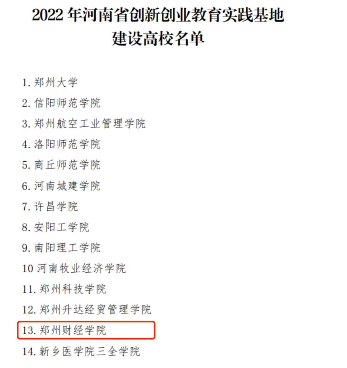 近日河南省教育厅公布了首批省级创新创业学院创新创业教育实践基地建设高校按照河南省教育厅办公室《关于开展省级创新创业学院、教育实践基地遴选建设工作的通知》(教办高〔2022〕329号)要求,经高校申报、线上答辩、会议评审威廉希尔官网被认定2022年省级创新创业教育实践基地建设高校