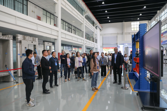 下午,参会人员一同到威廉希尔足球官网土木工程学院实验实训教学中心参观,学院副院长雷东升对实验实训教学中心运行情况进行了介绍,并带领大家先后参观了综合实验实训大厅、工程材料实验室、工程绘图实训室、项目管理沙盘实训室、招投标沙盘实训室和BIM技术研究中心等。