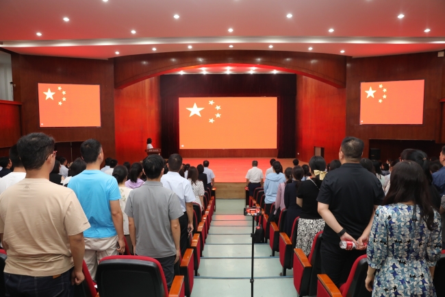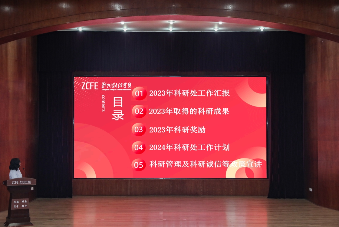 在庄严的国歌声中,大会正式拉开帷幕。 首先,副校长许玲玲作2023年科研工作汇报,回顾一年来学校科研工作所取得的成果,对辛勤付出的教师们表示感谢。她指出,教学和科研是“鸟之双翼,车之两轮”,教师与学校更是相互成就、相辅相成的关系。科研事关教师个人追求与发展,也是学校高质量发展的重要支撑,学校将为教师们提供更好的科研平台和服务。