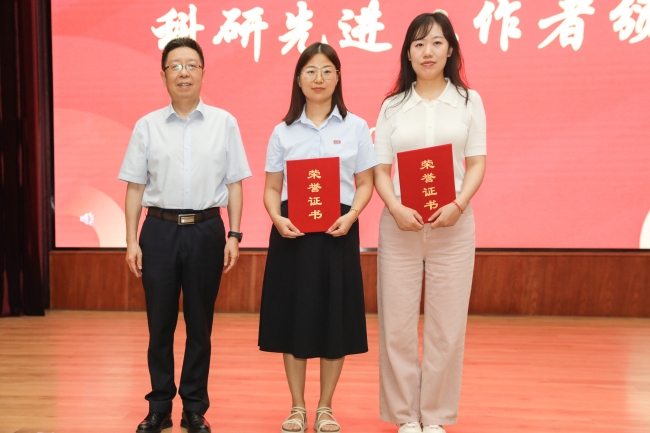吴中宣读本次大会表彰的科研先进个人、科研先进工作者及科研先进单位名单。获奖人员依次上台领奖。他们表示这份荣誉的获得不仅是靠个人的力量,更离不开学校、学院、项目团队等多方的支持,荣誉是对过去努力的肯定,更是对未来科研工作的鞭策,将继续努力潜心投入科研工作,为学校的发展贡献力量。