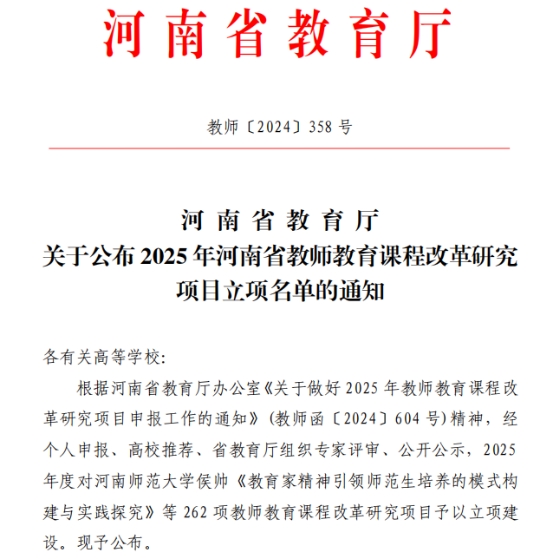 喜讯:威廉希尔官网3项课题获批2025年河南省教师教育课程改革研究项目立项