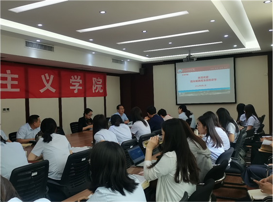 6月1日下午,河南省青年社科宣传专家、河南财经政法大学副教授、道德与文明研究中心研究员路向峰受邀为马克思主义学院教师作专题讲座。学院院长刘洁辉、党总支书记许天亮、副院长朱晓燕及全体教师共同聆听了此次讲座。讲座由朱晓燕主持。