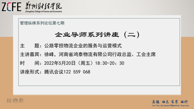 徐峰为师生做“公路零担物流企业的服务与运营模式”线上讲座