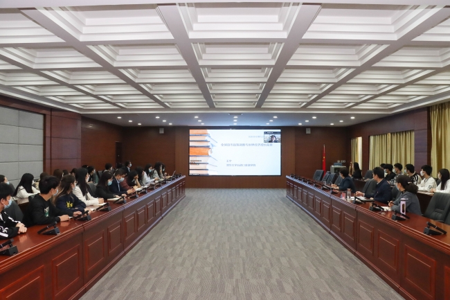最后,张顺利作总结讲话。他指出,王宇研究员的报告阐释了当前全球通胀形势及其所带来的各国紧缩的货币政策,分析了此轮货币政策紧缩的复杂影响,预测了未来世界经济发展的前景,不仅开阔了我们的视野,让我们对当前世界经济形势及未来发展趋势有了更加清晰的认识,同时,也让我们感受到,中国在助力世界经济走出低谷,推动构建人类命运共同体过程中所展现出的大国担当。他呼吁,大学生作为新时代的青年,面对国际国内形势,应肩负历史使命,坚定前进信心,立大志、明大德、成大才、担大任,努力成为堪当民族复兴重任的时代新人,让青春在为祖国、为民族、为人民、为人类的不懈奋斗中绽放绚丽之花。