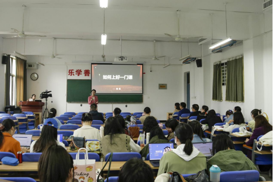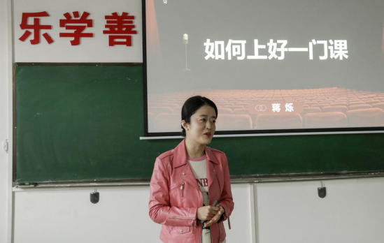 蒋烁从教师课堂驾驭能力、语言组织、课程时间把控、讲课能力、教姿教态等方面进行专业指导。她通过亲身示范、面对面指导,对教师的仪容仪表、站姿走姿、手势动作、声音语调等进行规范训练,让教师们了解和体验课堂教学基本体态、语言表达,为提高课堂教学效果打下基础。