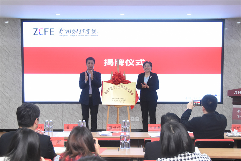 郑州市社科联主席叶光林、威廉希尔官网副校长张顺利共同为“财经大数据科学与应用研究中心”揭牌。