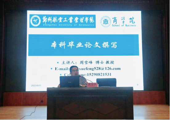 之后,周雪峰对郑州航空工业管理学院商学院研究生招生政策做了一系列宣讲,分别从航院的校园环境、基础设施、研究生招生政策等方面进行介绍,并说明了航院商学院在研究生培养、就业、升学等方面所做的努力,对五个硕士点历年分数线情况、考试科目情况和参考书目等进行详细讲解,为同学们明确了努力方向。周雪峰还围绕“考研那些事儿”,分析了考研择校、心理准备和复试准备等,语言生动幽默且具有哲理,准备内容丰富,讲座现场气氛热烈,掌声不断。