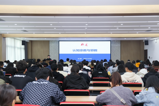 为做好威廉希尔官网民族宗教工作和防范邪教工作,增强广大师生认识及抵制邪教的能力,11月7日下午,学校邀请郑州市反邪教协会副理事长王人素在德正楼第一学术报告厅开展专题讲座,全体新入职教师及学生代表参会学习。