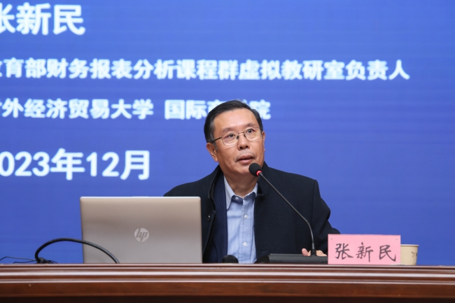 张新民教授通过讲解财务报表分析课程价值,指出财务报表分析不仅是简单的数据呈现,通过财务报表能够挖掘出数据背后企业的业务、战略及管理情况,挖掘财务报表能力的培养是财务报表分析课程的核心价值所在。他用辅仁药业和紫光股份有限公司的报表,双汇集团的股份分配与股票发行等多个案例,分析通过商誉、营业收入、开发支出等财务报表项目,识别企业经营管理“病灶”的方式方法。他从师资、学生求学、人才培养方向三个方面,分享关于经管类专业人才培养的经验与见解。张教授指出,教师应具备人才培养、科学研究和解决问题三个能力,学生求学之路的选择应以更好的职业规划为目标,学校在经管类专业人才培养方面应具有系统思维。大数据环境下,财务人员应冲破数据与程序的限制,在预测、绩效评价、价值评估、风险识别等方面发挥不可替代的作用。